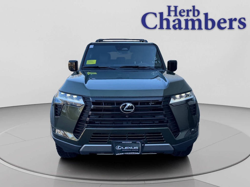Navigation, 4x4, Sunroof, Power Liftgate, Rear Air, Heated Driver Seat, Heated Rear Seat, Cooled Driver Seat, Back-Up Camera, Turbocharged, Satellite Radio, iPod/MP3 Input, Onboard Communications System, Trailer Hitch, Aluminum Wheels Rear Spoiler, MP3 Player, Remote Trunk Release, Privacy Glass, Child Safety Locks. Lexus GX 550 Overtrail+ with Nori Green Pearl/Black Roof exterior and BLACK(TSUYASUMI) interior features a V6 Cylinder Engine with 349 HP at 4800 RPM*.