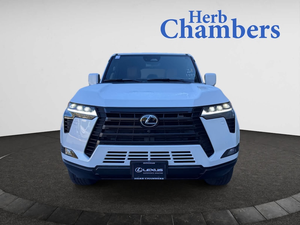 Navigation, 4x4, Third Row Seat, Leather Seats, Sunroof, Panoramic Roof, Power Liftgate, Rear Air, Heated Driver Seat, Heated Rear Seat, Cooled Driver Seat, Back-Up Camera, Running Boards, Turbocharged, Premium Sound System. Rear Spoiler, MP3 Player, Privacy Glass, Remote Trunk Release, Child Safety Locks. Lexus GX 550 Luxury+ with Eminent White Pearl exterior and GLAZED CARAMEL interior features a V6 Cylinder Engine with 349 HP at 4800 RPM*.