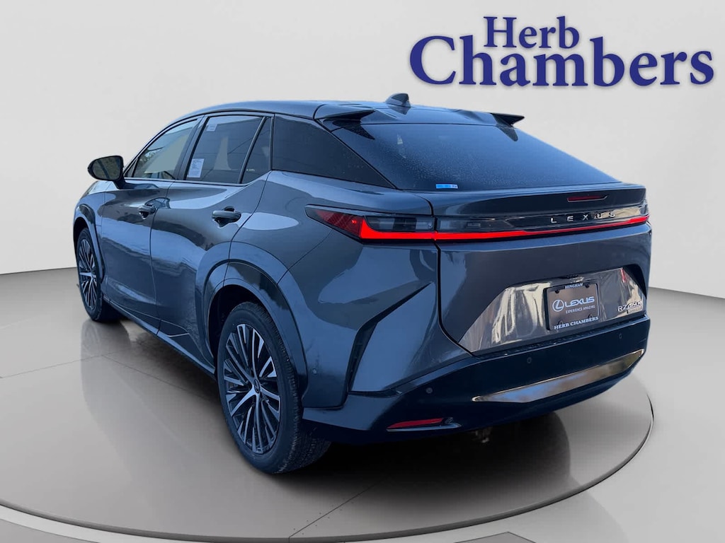 Navigation, All Wheel Drive, Power Liftgate, Heated Driver Seat, Cooled Driver Seat, Back-Up Camera, Satellite Radio, iPod/MP3 Input, Onboard Communications System, Dual Moonroof, Keyless Start, Dual Zone A/C, WiFi Hotspot, Blind Spot Monitor, Hands-Free Liftgate MP3 Player, Remote Trunk Release, Privacy Glass, Child Safety Locks, Steering Wheel Controls. Lexus RZ 450e Premium with CLOUDBURST GRAY exterior and LT. GRAY interior features a Electric Motor.